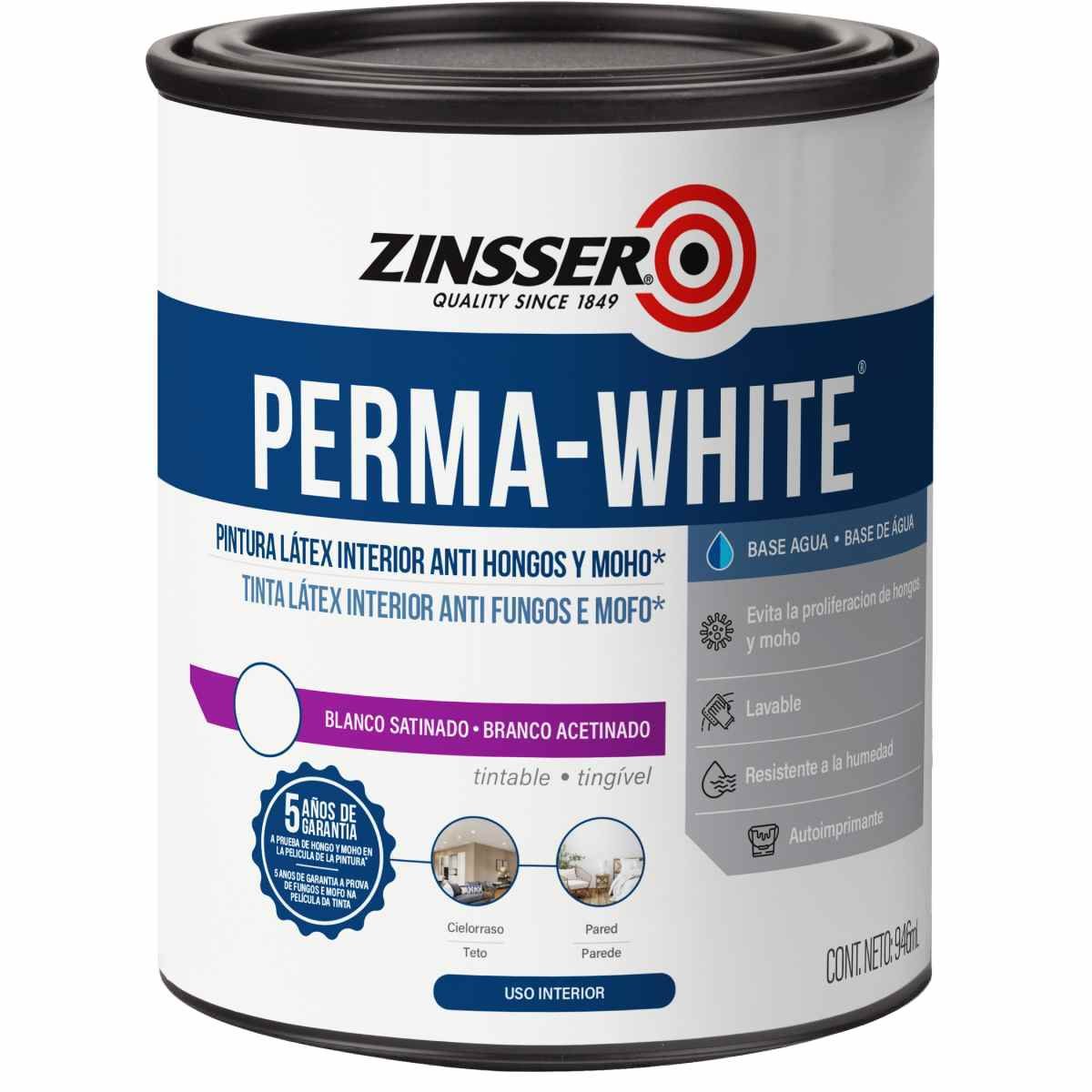 L谩tex Interior Perma-White Satinado Blanco 0,9 Litros